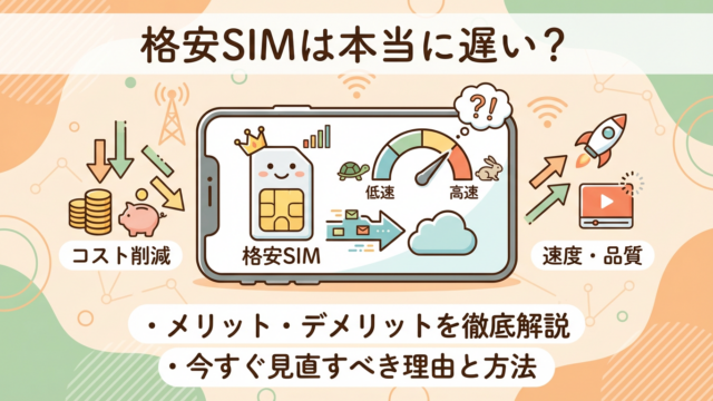 「格安SIMって安いけど、やっぱり遅いんでしょ?」この疑問を持っている人は非常に多いです。確かに、大手キャリアと比べて料金が安いため、「何かデメリットがあるのでは」と感じるのは自然なことです。しかし結論から言えば、格安SIMは“使い方次第”...
